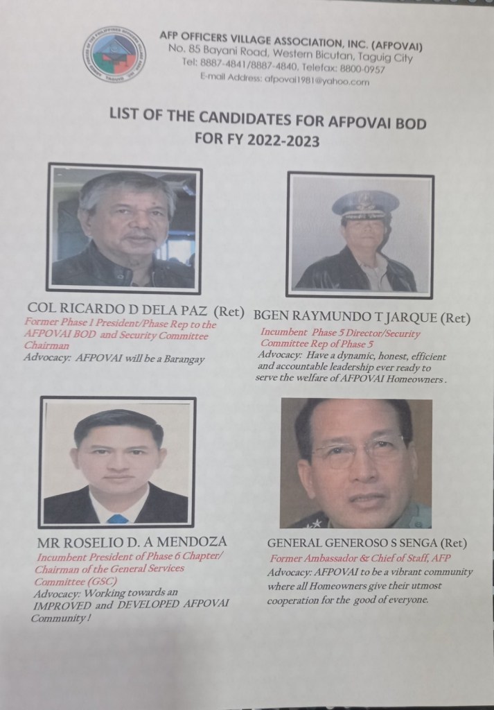 For the elections, Afpovai Main Board has 4 vacant seats and there are 4 who filed for candidacy.